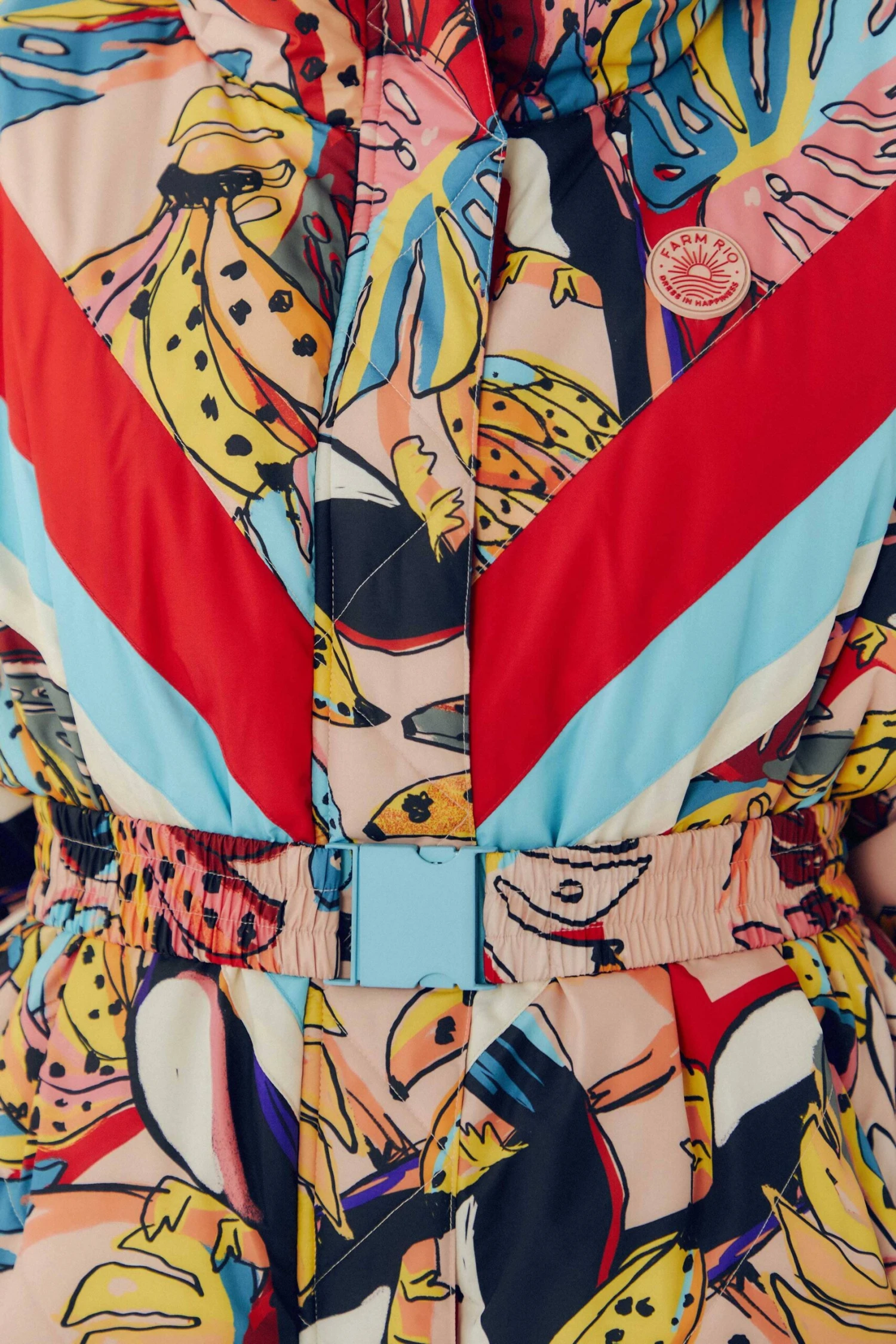 Our first-ever Skiwear Collection landed in Les 3 Vallées, the biggest ski area in the world. Surrounded by the most beautiful peaks, we launch pieces full of colorful prints that bring our carioca vibe to brighten up your adventures. So let’s explore the great outdoors while beating the cold in style on the slopes or during your après ski moments with puffer jackets, pants & jumpsuits that feature high-performance Graphene fibers and recycled polyester for insulation.