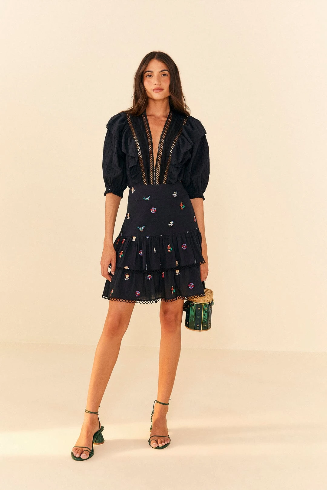 - Lace and ruffled detailing