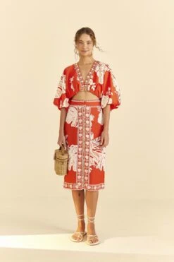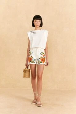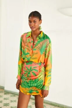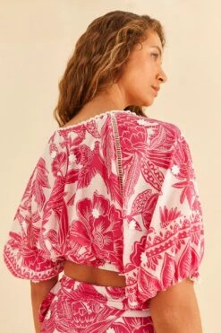 Embody the exuberant energy of the season in a Summer-ready style. The Green Lace Monsteras Crop Top brings the freshest silhouette with embroidered beads to make a bold impression everywhere and one of the must-have prints of our new collection. For a chic-yet-cool look, you can bring skirts and tailored pants on or throw shorts for a fun vibe: either way, you’ll be effortlessly walking on the brightest side!