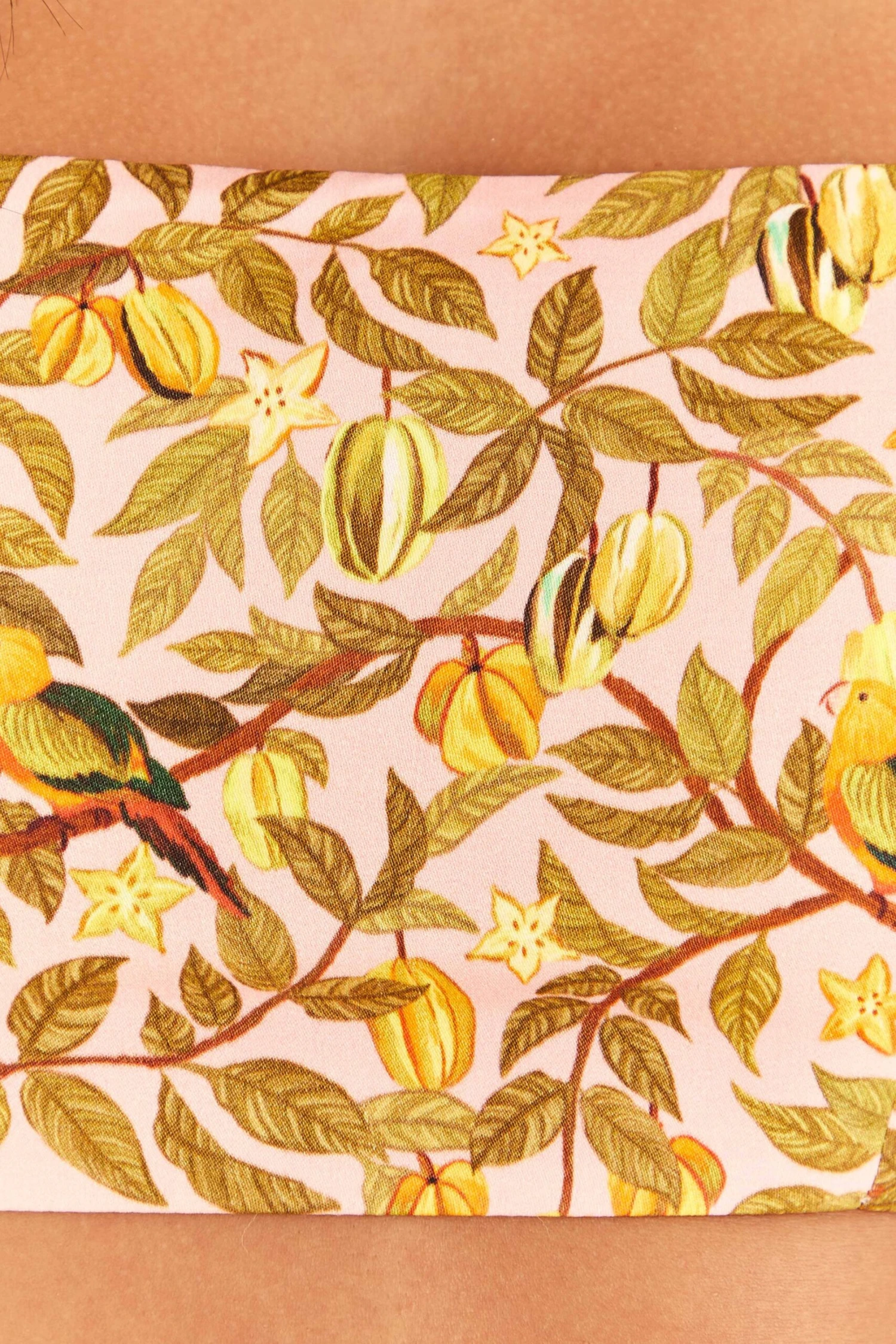 Your perfect excuse for making solar plans is here: Light Pink Star Fruit Crop Top is the sleeveless piece that will allow you to enjoy all the sunlight you can. Its nature-inspired print mixes light colors and delicate elements. The skin-tight fit will flatter your silhouette and make everyone around you speechless. Match this