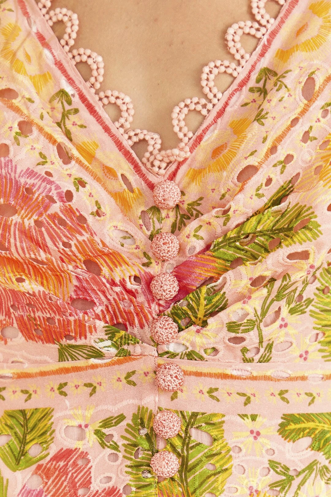 - Crochet buttons at center front