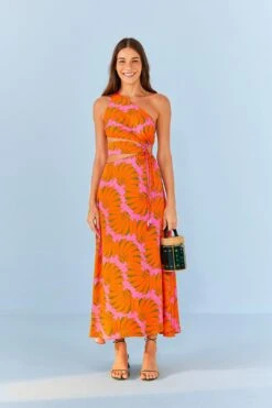 Farm Rio Pink CopacabanaLenzing⢠Ecovero⢠Viscose Cut Out Midi Dress